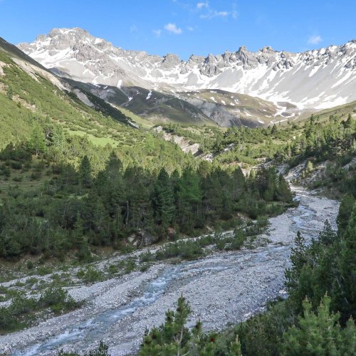 Dans ce petit coin d’Engadine, ce qui me touche le plus, ce qui me bouleverse, c’est ce torrent qui coule libre, qui change de visage au fil des crues et des éboulis. Il y a là pour moi toute la puissance de la liberté, ceinte de montagnes et coulant toujours vers un peu plus bas…